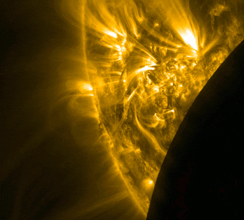 太陽フレアとは太陽の表面で起きている爆発現象のことで、その形がフレア(火炎)のように見えるところから名付けられている。