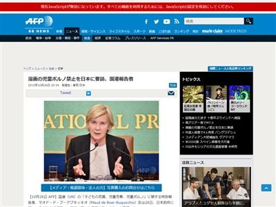 国連人権理事会から「児童売買、児童買春及び児童ポルノ」 に関する特別報告者に任命されているマオド・ド・ブーア=ブキッキオさんは3月、人権理事会に提出した報告書で、日本を「漫画、アニメ、コンピューターグラフィック、ビデオ、オンラインゲームなどに極端な児童ポルノの描写を含む、バーチャルな子供を性的搾取する表現の主要製造国」と呼んだ2014年の米国務省報告を引用した。